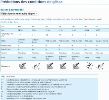 Le Réseau Sport Activité est très heureux de vous proposer un tout nouveau concept pour vous aider à planifier vos sorties et vos déplacements pour pratiquer vos sports de glisse. En effet, très bientôt, ici même sur ce site Internet vous verrez apparaître les "Prédictions des conditions de glisse" présentées par région du Québec et ceci, une semaine à l'avance. Oui! Oui! une semaine à l'avance, vous pourrez avoir une bonne idée des conditions de glisse qui prévaudront dans les régions du Québec. Grâce à l'expérience cumulative de nos évaluateurs, aux experts en neige, aux prévisions météo et de puissants algorithmes, la technologie utilisée par RSA vous offre maintenant ce outil à tous les amateurs de sports de glisse. C'est avec beaucoup d'enthousiasme que RSA vous souhaite d'en profiter; amusez-vous!